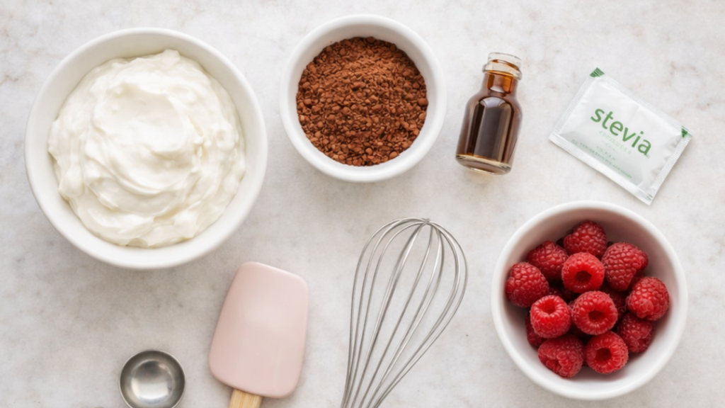 - USDA FoodData Central: Greek yogurt, Cocoa powder, Raspberries.