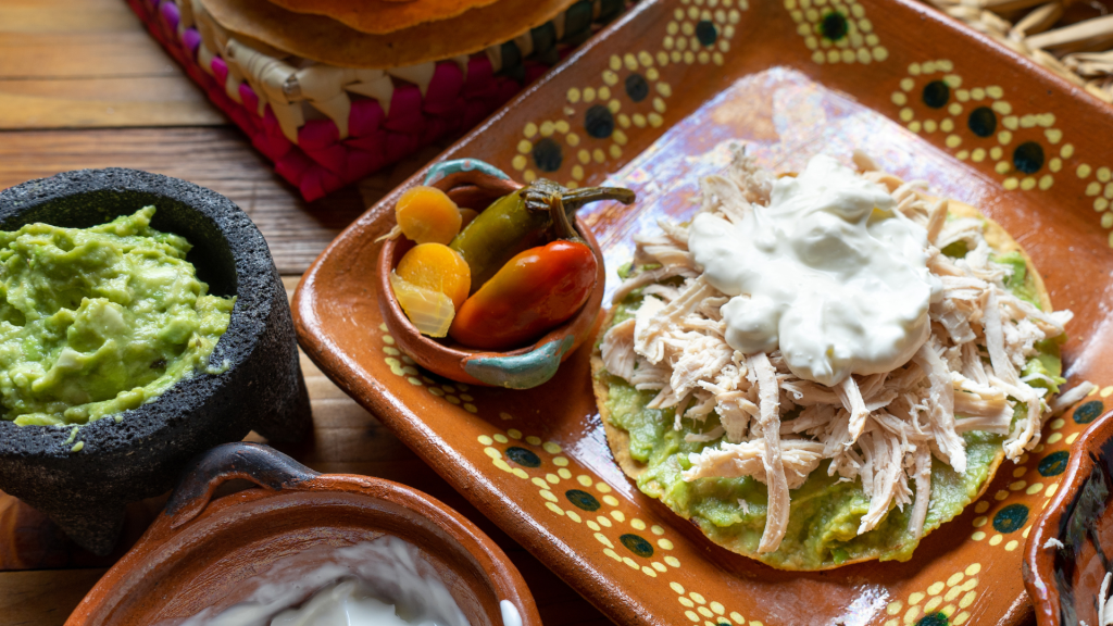 - Coloca el pollo sobre las tostadas y agrega el guacamole encima.